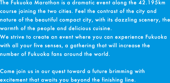 - (10)Guidelines are subject to change. Announcements will be posted on the Fukuoka Marathon website.