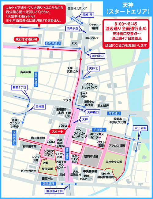 | 10㎞ | 小戸西交差点付近 | 8:52 | 9:19 | 9:37 | 9:54 | 10:10 |