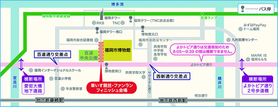 | 5㎞ | 福岡市博物館 | 8:36 | 8:50 | 9:02 | 9:13 | 9:22 |
